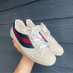 Gucci Ace White Sneakers with Red and Blue Stripes Limited Edition Sz 8G 9 US