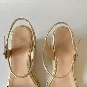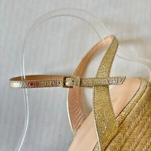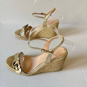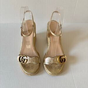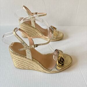 Gucci Aitana GG Marmont Espadrille Platform Wedge Heel Sandals Gold Size EU 37.5