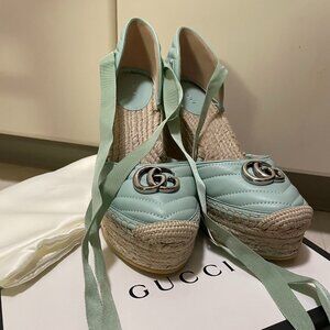 Gucci Ankle Tie Wedge Platform Espadrille Sandals