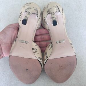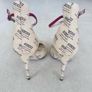 Gucci Apollo Gucci Stamp Print Beige Leather Logo Ankle Strap Pumps EU37.5 US7.5