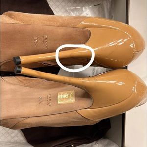 Suede Gucci Heels…. 10 in US,, 39+ ,, only worn once! Practically new! Small scuffs that can be removed with scuffle removal zoom in please to see details. Happy Poshing 🥰