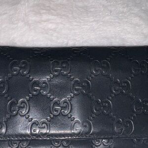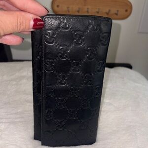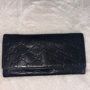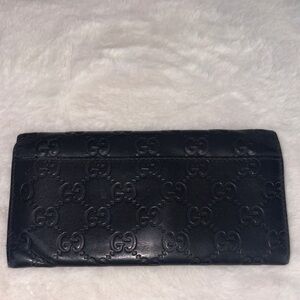 Gucci Authentic Black GG Embossed Wallet Long with Italian leather.