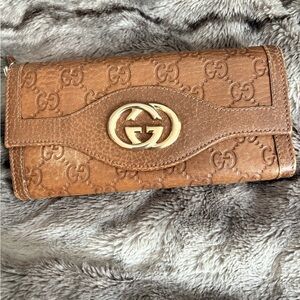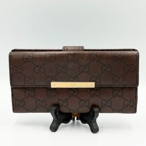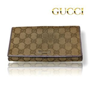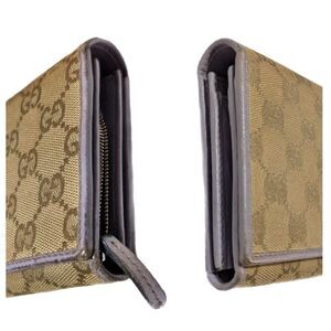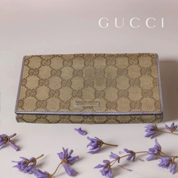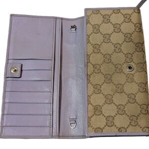 Gucci (Authentic) GG Monogram Canvas & Purple Leather Accent Long Vintage Wallet