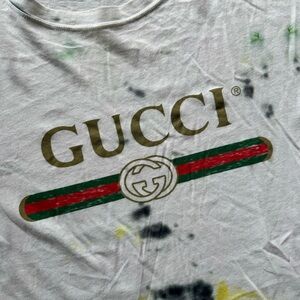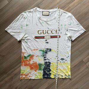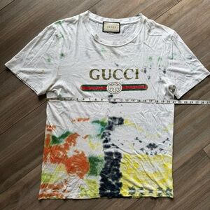 Gucci Authentic Men’s Short Sleeve Tie Dye Shirt Belt Logo Multicolored Size XL