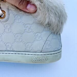Gucci Authentic Rabbit Fur High Top Guccissima GG Sneakers Monogram 39 Grey 9