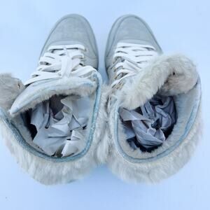 Condition: Good, includes box. Some wear to the outsoles and worn fur around ankles. The shoelaces have been replaced.