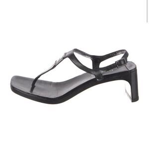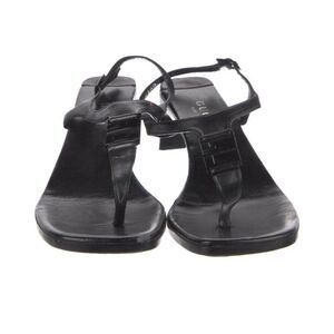 Gucci Authentic Solid Black Leather Thong Slingback Medium Heel Sandals 6.5