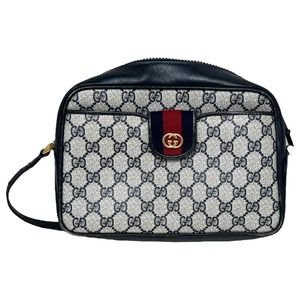 Gucci Authentic Vintage Navy Canvas Shoulder Bag Purse