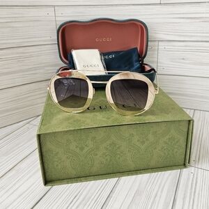 Gucci Aviator GG0105S Aviator Sunglasses in Gold and Brown Gradient NWT