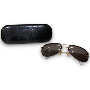 Gucci Aviator Style GG Gold Metal Frame & Black Lens Vintage Sunglasses w/ Case