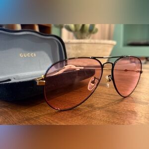 Chic and versatile with pink gradient lenses and blush arms. Perfect for day or night, casual or dressed up. Lightweight, stylish, and comes with original Gucci case. Made in Japan – authentic and like new!