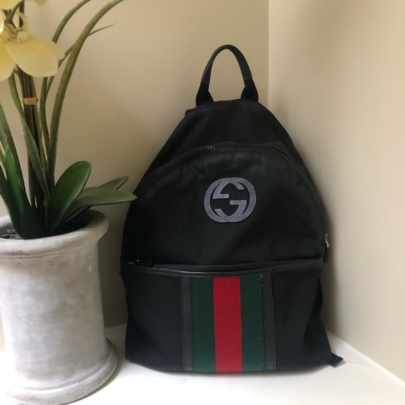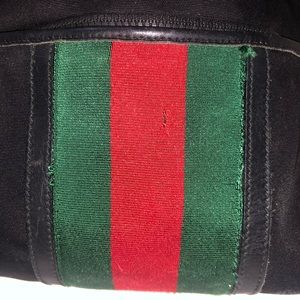Rare Gucci backpack!! Authentic (I have had it authenticated and have a certificate). There is a small stain in the back on the bottom right (shown in second picture). There is fading around the zipper and some loose threads in the stripes. Overall in good condition!