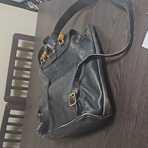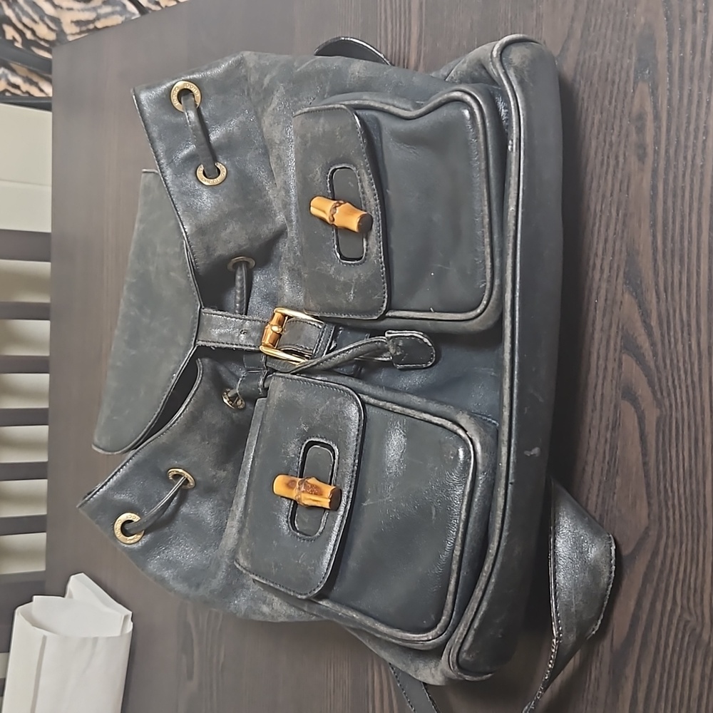 It's used outside it's looking old mas it not, Inside it's 90 % new . Authentic Bamboo tassel oval leather Backpack. you can go in the store they can cleaning.
