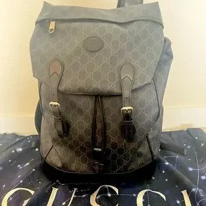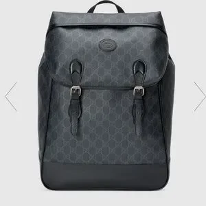 The Interlocking G has remained one of the most symbolic codes of the House since its introduction. The distinguishing emblem appears as a leather detail atop this backpack as a subtle reference to Founder Guccio Gucci. Completing the design's logo feel, a contemporary black GG Supreme canvas appears alongside a black leather trim.