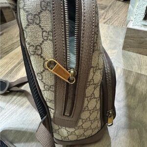 Gucci backpack featuring a classic brown and green design. Perfect for everyday use with a touch of luxury.