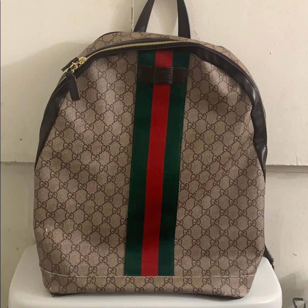 Medium sized Gucci backpack, with just a couple scratches on straps and bottom left side.