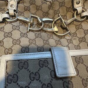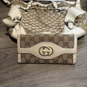 Gucci Horsebit bag and Gucci wallet. Bag has wear and tear in 2 spots. Please see pictures. Wallet is in very good condition. Beige and Ivory color.