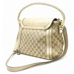 Gucci Bag Beige Champagne Shoulder GG 2WAY Bamboo Khaki
