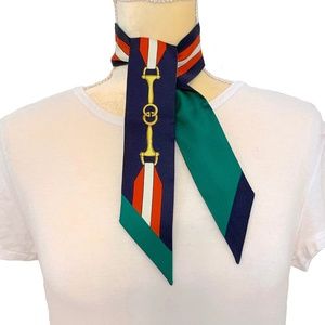 Gucci Baiadera Horsebit Stripe Neck Bow scarf New