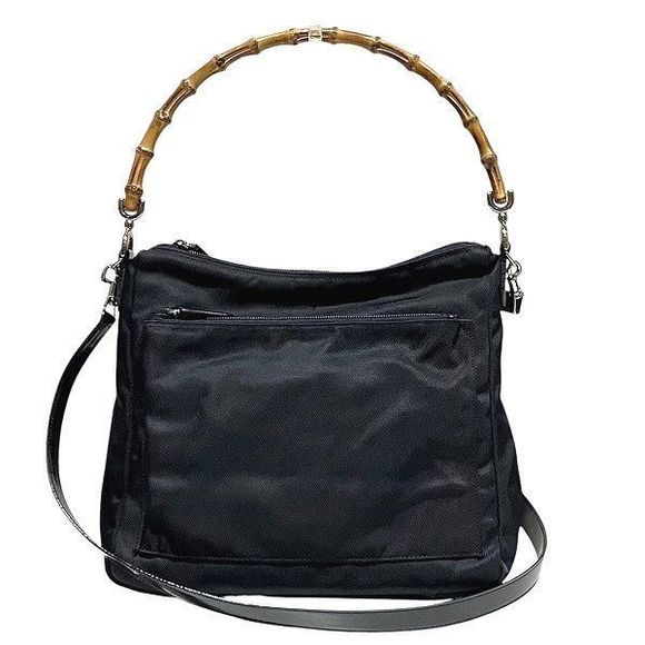 Gucci Bamboo 000-2032-0509 2WAY Black Bag Shoulder Bag Handbag Women