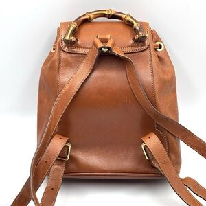 Gucci bamboo backpack, vintage Gucci backpack, brown leather backpack, bamboo handle bag, mini backpack, Italy made Gucci, 003 1705 0030, classic Gucci leather, designer backpack, neutral everyday bag
