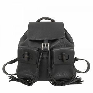 Gucci Backpack/Daypack Bamboo 370833 Black Leather with Silver Hardware Women's