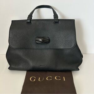 Gucci Bamboo Black Pebbled Calfskin Daily Medium Top Handle Shoulder Bag Purse