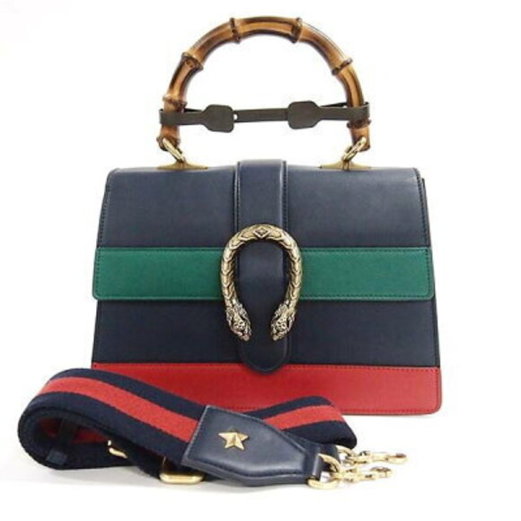 Gucci Bamboo Dionysus Top Handle Bag Shoulder Navy Blue Green Red Snake