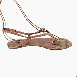 Gucci Bamboo GG Flat Thong Sandals Size 36 US 6 Beige Monogram Canvas Flop Flop