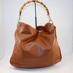 Gucci Bamboo Handle Large Hobo Bag Brown Leather Shoulder Purse
