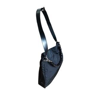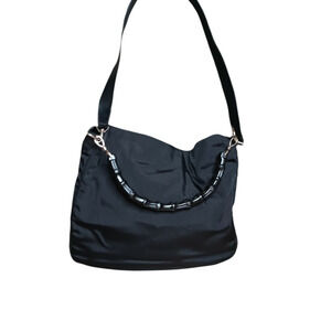 Gucci Bamboo Nylon Shoulder Bag Black Leather Trim Tote Preowned Authentic Large