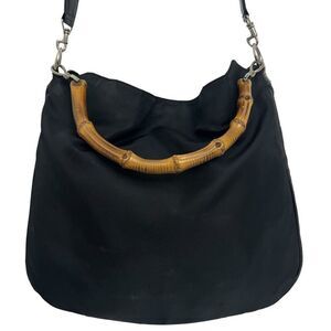 Gucci Bamboo Handle Black Nylon Two Way Shoulder Bag Authentic w Serial #