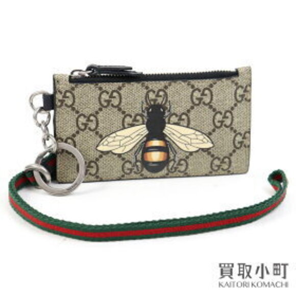 Gucci Bee GG Supreme Card Wallet Neck Strap Holder Coin