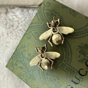 Authentic Gucci earrings featuring elegant bee motifs crafted in gold tone, accented with lustrous pearls. In excellent condition, these exquisite earrings showcase Gucci's signature blend of nature-inspired design and luxury craftsmanship. Comes with original Gucci box and packaging. Perfect for adding a touch of romantic sophistication to any outfit. A timeless piece that transitions seamlessly from day to evening wear. Message me for more details or additional photos!