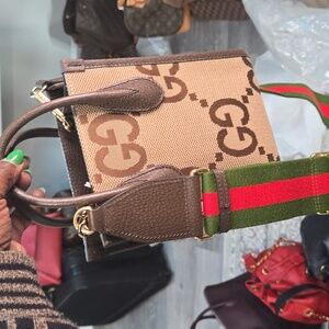 Gucci Beige Canvas Brown Leather Crocodile Secret Hobo