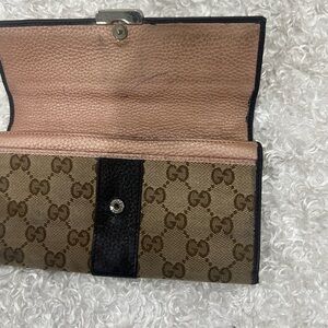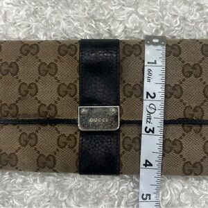 Gucci Beige GG Canvas and Leather Flap Wallet. Pre-owned. Minor signs of wear, scuffs. See pictures