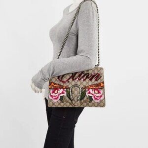 Gucci Beige GG Supreme Canvas Embroidered Elton Medium Dionysus Bag