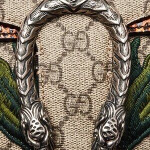 Material: Beige GG coated canvas with fabric applique and snakeskin