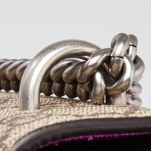 Material: Beige GG coated canvas, purple suede with fabric applique