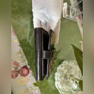 This wallet is in good pre-owned condition, with typical edge and corner wear consistent with normal use. No interior peeling or sticky film — a common issue with older canvas/leather pieces — and the metal push-clasp functions smoothly. A sleek, iconic Gucci accessory that still looks great and performs well.