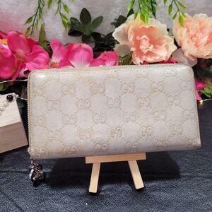 Gucci Beige Guccissima Leather Long Wallet Authentic