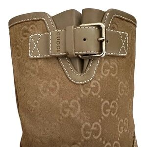 Gucci Beige Guccissima Taupe Suede Quercy Flat Buckle Boots Size 36.5 | US 6.5