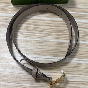 Elevate your style with this Gucci beige leather belt, featuring a striking gold buckle. Perfect for adding a touch of luxury to any outfit.