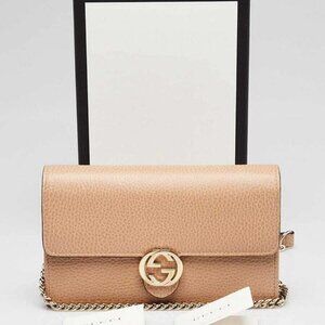 Gucci Beige Leather Interlocking G Wallet on Chain Clutch Bag