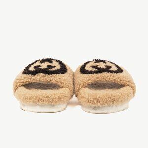 Gucci Beige Merino-Wool Faux-Shearling Interlocking-GG Slide Sandals