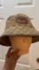 Elegant Gucci bucket hat with signature monogram. Features beige and brown tones. Iconic style with logo detail. Side medium, comes with tags. Open to offers.