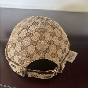 Elegant Gucci cap with signature monogram. Features beige and brown design.