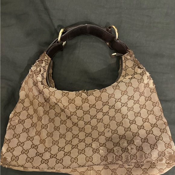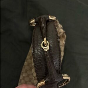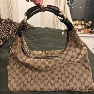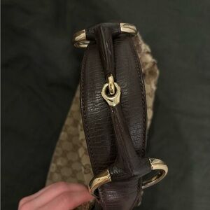 Gucci Beige and Brown Monogram Horsebit Shoulder Bag