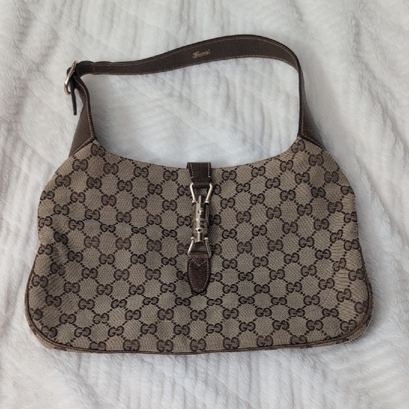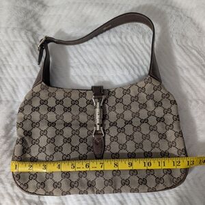 Chic Gucci shoulder bag with iconic pattern. Perfect for stylish outings. Dust bag included.
