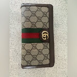Gucci Beige and Brown Wallet with Green and Red Stripe